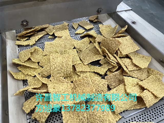 许昌智工两米流水线智能控制,自动生产,炒出的苦荞片色泽均匀,客户非常满意。